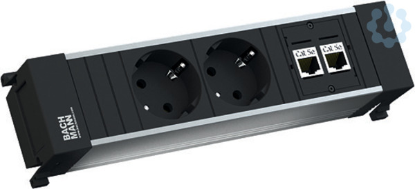 Power Frame Steckdoseneinheit ALU Länge: 219,6 +/- 0,2mm. 2xSchutzkontaktsteckdosen schwarz. 2xCAT6A Kupplung Buchse/Buchse Zuleitung: Festanschluss 0,2m H05VV-F 3G1,5mm² sw mit Wieland GST18 Stecker verpackt im Karton
