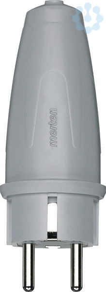 Spritzwassergeschützter Stecker. Große Ausführung, mit Knickschutztülle. Farbe grau.