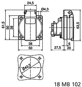 Bohrlochabstand vertikal: 38 mm, Bohrlochabstand horizontal: 38 mm,