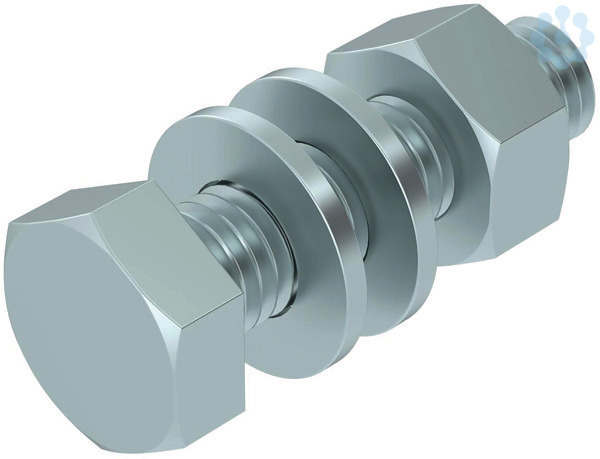 Sechskantschraube zur universellen Befestigung von Konstruktionsbauteilen. Inklusive Sechskantmutter und 2 Unterlegscheiben.