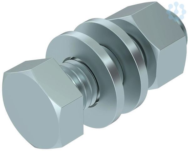 Sechskantschraube zur universellen Befestigung von Konstruktionsbauteilen. Inklusive Sechskantmutter und 2 Unterlegscheiben.