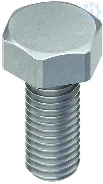 Sechskantkopfschraube nach DIN EN ISO 4017. Die Festigkeitsklasse der Schraube ist auf dem Schraubenkopf eingeprägt. Speziell bei Anschlüssen, die vertikale Lasten über Reibung übertragen müssen, ist unbedingt auf das Schraubenanzugsmoment zu achten und mit dem Drehmomentenschlüssel zu überprüfen!