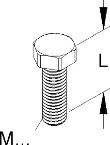 Sechskantkopfschraube nach DIN EN ISO 4017. Die Festigkeitsklasse der Schraube ist auf dem Schraubenkopf eingeprägt. Speziell bei Anschlüssen, die vertikale Lasten über Reibung übertragen müssen, ist unbedingt auf das Schraubenanzugsmoment zu achten und mit dem Drehmomentenschlüssel zu überprüfen!