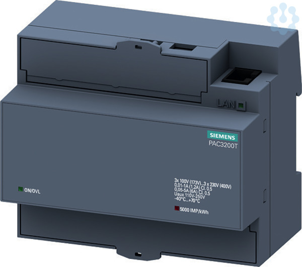 SENTRON, Messgerät, 7KM PAC3200T, Hutschienengehäuse ohne Display, L-L: 400 V, L-N: 230 V, 5 A, Hutschienengerät, 3-phasig, MODBUS TCP, Schein- / Wirk- / Blindenergie, Weitspannungsnetzteil, AC/DC, Schraubanschluss Die Messgeräte 7KM PAC sind die ideale Basis für die Erfassung von Energiewerten. Die Messgeräte 7KM PAC erfassen präzise, reproduzierbar und zuverlässig die Energiewerte für die Einspeisung, elektrische Abgänge oder einzelne Verbraucher. Sie liefern nicht nur umfassende Informationen über Ihre Elektroinstallation und Energieverteilung sondern auch wichtige Messwerte zur Beurteilung des Anlagenzustands und der Netzqualität. Zur weiteren Verarbeitung der Messdaten lassen sich die Geräte dank ihrer vielfältigen Kommunikationsmöglichkeiten sehr einfach in übergeordnete Automatisierungs- und Energiemanagementsysteme einbinden. Das Messgerät 7KM PAC4200 erfasst rund 200 Messwerte, darunter auch Basisdaten zur Beurteilung der Netzqualität. Die Siemens Messgeräte 7KM PAC3200T zeichnen sich vor allem aus d