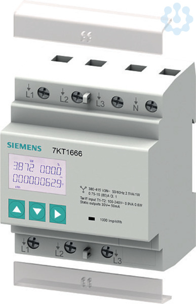 SENTRON, Messgerät, 7KT PAC1600, LCD, L-L: 400 V, L-N: 230 V, 80 A, Hutschienengerät, 3-phasig, Modbus RTU/ASCII + MID, Schein- / Wirk- / Blindenergie, eigenversorgt, Schraubanschluss