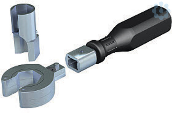 Ratschen-Set bestehend aus einer Grundratsche Typ V-TEC RA, einem Griff für Grundratsche Typ V-TEC GR und vier Steckschlüsselaufsätzen in den Größen SW 15, SW 20, SW 24 und SW 29. Im Bedarfsfall kann der mitgelieferte Griff der Ratsche gegen einen entsprechenden Standard-Drehmomentschlüssel getauscht werden. Belastbar bis max. 20 Nm.