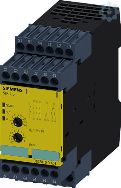SIRIUS Sicherheitsschaltgerät sicherheitsgerichtete Stillstandsüberwachung AC 400 V, 45 mm Schraubanschluss FK unverzögert: 3 S + 1 Ö FK verzögert: 0 MK: 3 Auto-Start Grundgerät max. Fehler-Kat. EN 954-1: 4 maximal erreichbarer PL nach EN 13849-1: e maximal erreichbarer SIL nach IEC 61508: 3 Stillstandswächter SIRIUS 3TK2810-0 zur sicheren Stillstandsüberwachung bei Motoren.Das Gerät ist flexibel einsetzbar für die Verwendung mit verschiedenen Motoren und Frequenzumrichtern und verfügt über eine einstellbare Stillstandsverzögerung. Es ist kostengünstig, da keine zusätzlichen Sensoren notwendig sind. Durch eine schnelle Fehlerdiagnose und Anzeige an Fehler-LEDs wird eine höhere Anlagenverfügbarkeit erreicht.Die Geräte sind jeweils mit verschiedenen Spannungen sowie mit Schraub- oder Federzuganschluss erhältlich.Das Zubehör wie zum Beispiel Bezeichnungsschilder erleichtert die Handhabung.Safety is a SIRIUS business.
