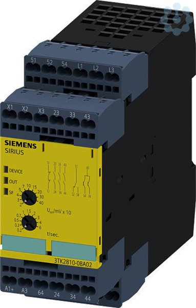 SIRIUS Sicherheitsschaltgerät sicherheitsgerichtete Stillstandsüberwachung DC 24 V, 45 mm Federzugklemme FK unverzögert: 3 S + 1 Ö FK verzögert: 0 MK: 3 Auto-Start Grundgerät max. Fehler-Kat. EN 954-1: 4 maximal erreichbarer PL nach EN 13849-1: e maximal erreichbarer SIL nach IEC 61508: 3 Stillstandswächter SIRIUS 3TK2810-0 zur sicheren Stillstandsüberwachung bei Motoren.Das Gerät ist flexibel einsetzbar für die Verwendung mit verschiedenen Motoren und Frequenzumrichtern und verfügt über eine einstellbare Stillstandsverzögerung. Es ist kostengünstig, da keine zusätzlichen Sensoren notwendig sind. Durch eine schnelle Fehlerdiagnose und Anzeige an Fehler-LEDs wird eine höhere Anlagenverfügbarkeit erreicht.Die Geräte sind jeweils mit verschiedenen Spannungen sowie mit Schraub- oder Federzuganschluss erhältlich.Das Zubehör wie zum Beispiel Bezeichnungsschilder erleichtert die Handhabung.Safety is a SIRIUS business.