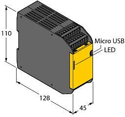 Sicherheitstechnik, Programmierbarer Sicherheits-Controller, PLe nach ISO 13849?1, Sicherheitskategorie 4 nach EN 954?1, SIL 3 nach IEC 61508 und IEC 62061, Einstellung über Druck?Taster oder Software, Betriebsspannung 24 VDC +?20%, Schutzart IP20, Kostenlose Software im Lieferumfang enthalten, 26 Eingänge, 8 davon in Ausgänge konfigurierbar, 2 unabhängige Sicherheitsausgänge, Intuitive Programmierumgebung