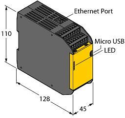 Sicherheitstechnik, Programmierbarer Sicherheits-Controller, PLe nach ISO 13849?1, Sicherheitskategorie 4 nach EN 954?1, SIL 3 nach IEC 61508 und IEC 62061, Einstellung über Druck?Taster oder Software, Betriebsspannung 24 VDC +?20%, Schutzart IP20, Kostenlose Software im Lieferumfang enthalten, 26 Eingänge, 8 davon in Ausgänge konfigurierbar, 2 unabhängige Sicherheitsausgänge, Intuitive Programmierumgebung, Ethernet-Anschluß, bis zu 64 virtuelle Statusausgänge realisierbar