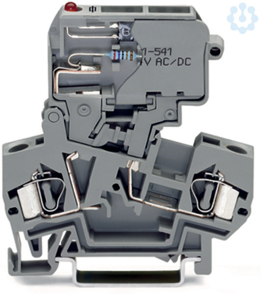 2-Leiter-Sicherungsklemme. mit schwenkbarem Sicherungshalter. für G-Sicherungseinsatz 5 x 30 mm. mit Defektanzeige durch LED. 30 - 65 V. für Tragschiene 35 x 15 und 35 x 7,5. 4 mm². CAGE CLAMP®. 4,00 mm². grau