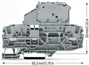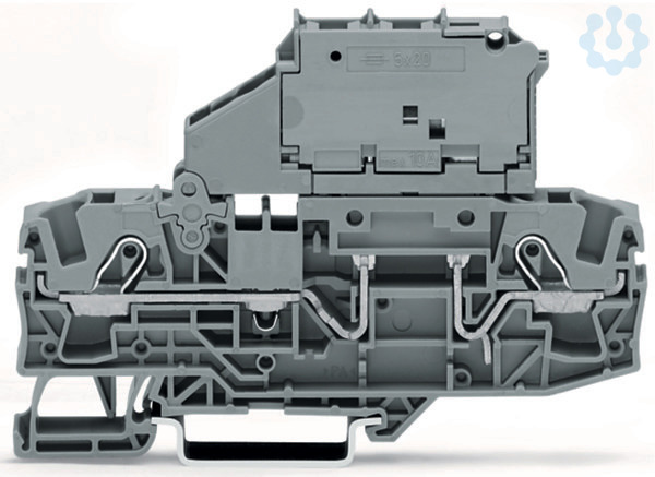 2-Leiter-Sicherungsklemme. mit schwenkbarem Sicherungshalter. für G-Sicherungseinsatz 5 x 20 mm. ohne Defektanzeige. für Tragschiene 35 x 15 und 35 x 7,5. 6 mm². Push-in CAGE CLAMP®. 6,00 mm². grau