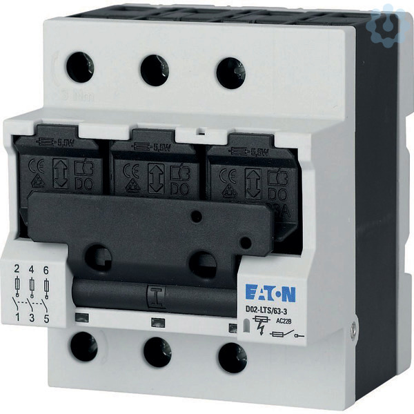 Lasttrennschalter mit Sicherungen, geeignet für Schmelzeinsätze mit Betriebsklasse gG (gL), aM, nur 4TE breit, mit FI verschienbar, Stromkodierung durch Hülsen-Passeinsätze, plombierbar, Anspeisung beidseitig möglich, Version mit Hilfsschalter D02-LTS/63-3-HK, Haltefedern für D01-Schmelzeinsätze oder zylindrische Einsätze 10x38 im Lieferumfang, Ausführung entsprechend IEC/EN 60947-3