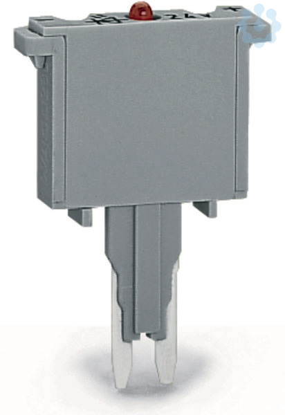 Sicherungsstecker. mit eingelöteter Miniatursicherung. mit Leuchtanzeige. LED rot. AC 15 - 30 V. 250 mA FF. 5 mm breit. grau