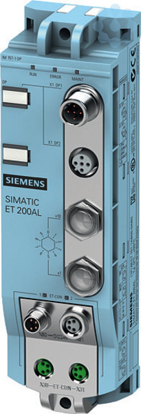 SIMATIC ET 200AL, PROFIBUS Interface-Modul IM 157-1 DP, Schutzart IP67 SIMATIC ET 200 AL ist ein IO-System in Blockbauweise mit hoher Schutzart IP65/67, besonders kompaktem Design sowie geringem Platzbedarf und Gewicht. Es ist speziell für verteilte Steuerungselektronik auf engem Raum und bei Bewegung konzipiert und wird schnell und komfortabel über das TIA Portal konfiguriert und in Betrieb genommen. Standardbaugruppen können gruppenweise sicherheitsgerichtet abgeschaltet werden. Die Peripheriemodule sind die Schnittstelle der SIMATIC ET 200AL zum Prozess. Über das Interfacemodul wird die ET 200AL an das Bussystem angeschlossen, wobei wahlweise ein PROFINET oder PROFIBUS Interfacemodul zur Verfügung steht.