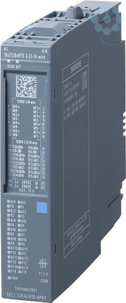 SIMATIC ET 200SP HA, analoges Eingangsmodul, AI 16XTC/8XRTD 2-/3-/4-Wire HA, passend für Terminal Block H1, M1, Farbcode CC00, Kanaldiagnose, 16bit, +/-0,05%, 2-/3-/4-Wire