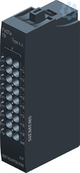 SIMATIC ET 200SP, Potenzialverteilermodul, PotDis-Terminalblock, PotDis-TB-n.c.-G, 18 x n.c. (not connected) Push-In-Klemmen keine Verbindung zu P1,P2,AUX, Verpackungsmenge: 1 Stück, Die SIMATIC ET 200SP ist ein modular aufgebautes skalierbares und hochflexibles, dezentrales Peripheriesystem. Durch den kleinen Footprint ist es insbesondere für den Einbau in kleinen maschinennahen Schaltkästen konzipiert. Die Module können entweder direkt an eine ET 200SP CPU gesteckt oder via PROFINET oder PROFIBUS an eine Zentralsteuerung angeschlossen werden. Die SIMATIC ET 200SP kann mit bis zu 64 Peripheriemodulen ausgebaut werden, die in beliebiger Kombination gesteckt werden können. Das System bietet ein sehr umfangreiches Spektrum an Baugruppen. Viele Module sind zudem in verschiedenen Ausprägungsstufen verfügbar, was die Skalierbarkeit bezüglich Funktionalität und Preis deutlich verbessert. So stehen neben Modulen mit Standardfunktionalität (ST) auch solche mit erweitertem Funktionsumfang und Diagnose (HF High Feature