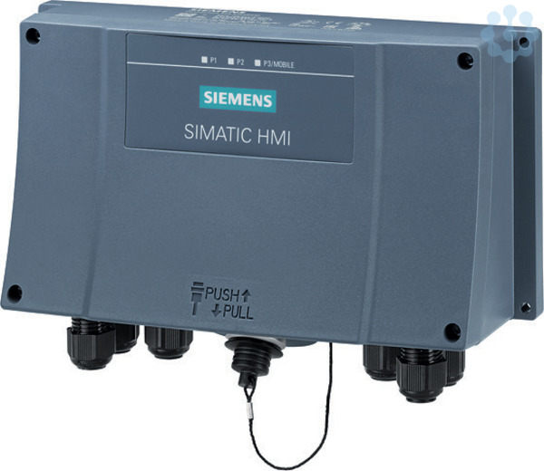 SIMATIC HMI Anschluss-Box Advanced für Mobile Panels, Befestigung auf Wand, PROFINET und PROFIsafe, Anschluss Sicherheitsrelais, Not-Halt-Kreis Überbrückung, Anschlusspunkt-Erkennung, integrierter Switch, MRP-Client Default inaktiv, IRT