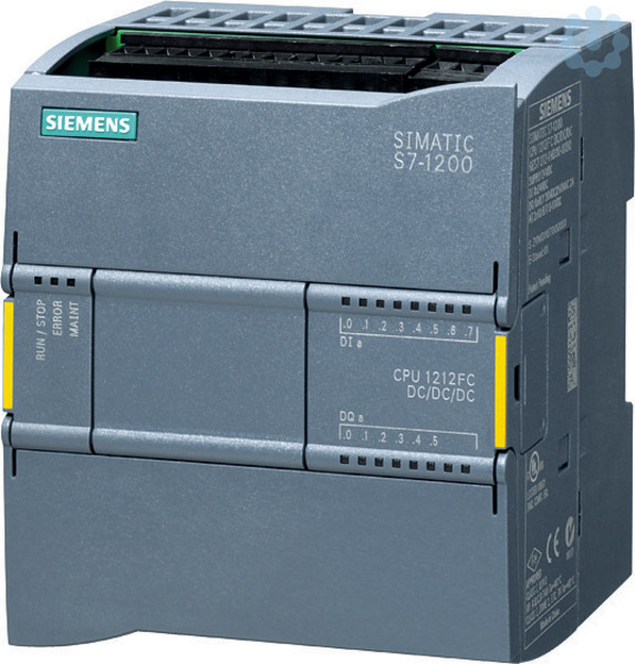 SIMATIC S7-1200, CPU 1212FC, Kompakt-CPU, DC/DC/Relais, onboard I/O: 8 DI DC 24V. 6 DO Relais 2A. 2 AI 0-10V DC, Stromversorgung: DC 20,4-28,8V DC, Programm-/Datenspeicher 100 KB SIMATIC S7-1200 Basic Controller - flexibel durch vielfältige Kommunikationsmöglichkeiten. Die Basic Controller sind erste Wahl, um Automatisierungsaufgaben im unteren und mittleren Leistungsbereich flexibel und effizient zu lösen. Die Zentralbaugruppen sind in ihrer Leistung skaliert, für unterschiedliche Eingangsspannungen und mit Transistor- oder Relaisausgängen verfügbar. Auch Safety-Varianten sind lieferbar. Neben den bereits integrierten Ein- und Ausgängen lassen sich die Kompakt-CPUs direkt auf dem Gerät oder mit unterschiedlichsten Signal- und Kommunikationsmodulen erweitern, um sie exakt Ihren Anforderungen anzupassen. HMI-Geräte sind über die integrierte Ethernetschnittstelle ebenfalls anschließbar. Der Speicher der CPU lässt sich per Memory Card erweitern, projektiert wird die SPS mit der Software STEP 7 Basic im TIA Porta