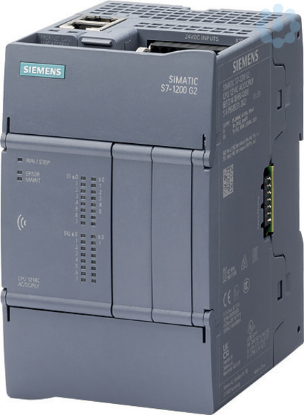 SIMATIC S7-1200 G2: Kompakt CPU 1214C DC/DC/DC, Stromversorgung: DC 20,4-28,8V DC, Onboard I/O: 14x DI 24V DC, 10 DO 24V DC, Speicher: Programm 250 KB Daten: 750 KB, Remanenz: 20 KB SIMATIC S7-1200 G2 Basic Controller - Die Basic Controller sind erste Wahl, um Automatisierungsaufgaben im unteren und mittleren Leistungsbereich flexibel und effizient zu lösen. Die Zentralbaugruppen sind in ihrer Leistung skaliert, für unterschiedliche Eingangsspannungen und mit Transistor- oder Relaisausgängen verfügbar. Auch Safety-Varianten sind lieferbar. Neben den bereits integrierten Ein- und Ausgängen lassen sich die Kompakt-CPUs direkt auf dem Gerät oder mit unterschiedlichsten Signal- und Kommunikationsmodulen erweitern, um sie exakt Ihren Anforderungen anzupassen. HMI-Geräte sind über die integrierte Ethernetschnittstellen ebenfalls anschließbar. Der Speicher der CPU lässt sich per Memory Card erweitern, projektiert wird die SPS mit der Software STEP 7 Basic im TIA Portal. Die S7-1200 G2 hat vielfältige Vernetzungsmögl