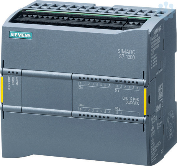 SIMATIC S7-1200F, CPU 1214 FC, Kompakt-CPU, DC/DC/DC, onboard I/O: 14 DI DC 24V. 10 DO 24V DC. 2 AI 0-10V DC, Stromversorgung: DC 20,4-28,8V DC, Programm-/Datenspeicher 125 KB SIMATIC S7-1200 Basic Controller - flexibel durch vielfältige Kommunikationsmöglichkeiten. Die Basic Controller sind erste Wahl, um Automatisierungsaufgaben im unteren und mittleren Leistungsbereich flexibel und effizient zu lösen. Die Zentralbaugruppen sind in ihrer Leistung skaliert, für unterschiedliche Eingangsspannungen und mit Transistor- oder Relaisausgängen verfügbar. Auch Safety-Varianten sind lieferbar. Neben den bereits integrierten Ein- und Ausgängen lassen sich die Kompakt-CPUs direkt auf dem Gerät oder mit unterschiedlichsten Signal- und Kommunikationsmodulen erweitern, um sie exakt Ihren Anforderungen anzupassen. HMI-Geräte sind über die integrierte Ethernetschnittstelle ebenfalls anschließbar. Der Speicher der CPU lässt sich per Memory Card erweitern, projektiert wird die SPS mit der Software STEP 7 Basic im TIA Portal.