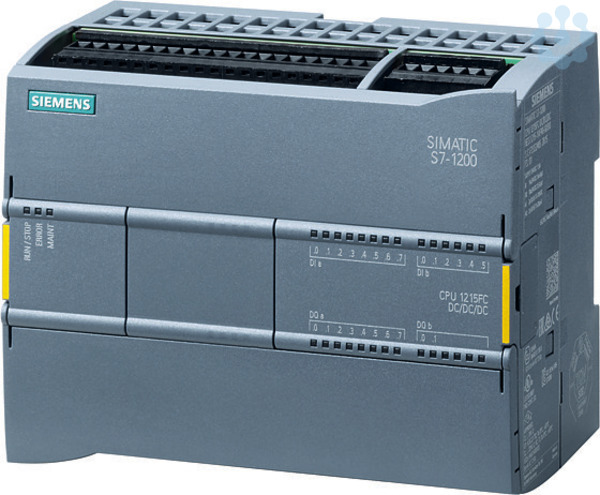 SIMATIC S7-1200F, CPU 1215 FC, Kompakt-CPU, DC/DC/DC, 2 PROFINET Port, onboard I/O: 14 DI 24VDC. 10 DO 24VDC. 0,5A. 2 AI 0-10V DC, 2 AO 0-20mA DC, Stromversorgung: DC 20,4-28,8V DC, Programm-/Datenspeicher 150 KB SIMATIC S7-1200 Basic Controller - flexibel durch vielfältige Kommunikationsmöglichkeiten. Die Basic Controller sind erste Wahl, um Automatisierungsaufgaben im unteren und mittleren Leistungsbereich flexibel und effizient zu lösen. Die Zentralbaugruppen sind in ihrer Leistung skaliert, für unterschiedliche Eingangsspannungen und mit Transistor- oder Relaisausgängen verfügbar. Auch Safety-Varianten sind lieferbar. Neben den bereits integrierten Ein- und Ausgängen lassen sich die Kompakt-CPUs direkt auf dem Gerät oder mit unterschiedlichsten Signal- und Kommunikationsmodulen erweitern, um sie exakt Ihren Anforderungen anzupassen. HMI-Geräte sind über die integrierte Ethernetschnittstelle ebenfalls anschließbar. Der Speicher der CPU lässt sich per Memory Card erweitern, projektiert wird die SPS mit der