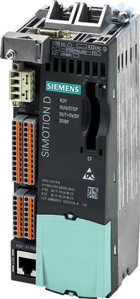 SIMOTION Drive-based Control Unit D410-2 DP/PN. programmierbare Einachs- Motion-Control-Steuerung mit Mehrachs-Option. Schnittstellen: 5 DI, 8 DI/DO 3 F-DI, 1 F-DO, 1 AI 1 Encoder, 1 Drive-CLiQ 1 PROFIBUS, 2 PROFINET-Ports 1 Ethernet Hinweis: erfordert mindestens Scout/Firmware V4.3 SP1 HF3 Kompakt, flexibel skalierbar, kostengünstig und reaktionsschnell: Bei SIMOTION D der SIMOTION-Familie ist die PLC-, die Technologie- und die Motion-Control-Funktionalität direkt in die Regelungsbaugruppe des Antriebssystems SINAMICS S120 integriert. SIMOTION D bietet sich überall da an, wo komplexe Applikationen auf kleinem Raum realisiert werden müssen. Durch die Zusammenfassung von Steuerung und Antrieb in einem System beansprucht SIMOTION D nur wenig Platz im Schaltschrank. Damit eignet sich das System optimal für dezentrale oder modulare Automatisierungslösungen - besonders bei komplexen Maschinen, die hohe zeitkritische Anforderungen an Achskopplungen stellen. SIMOTION D ist die ideale Lösung für Systeme, in denen hoh