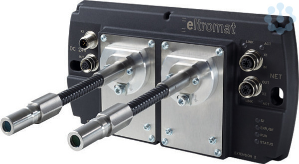 SIMOTION TRC3000 Keilmarkensensor RSH-PN fuer 2 Lichtleiter Mit dem Technologiemodul Register Control TRC3000 werden Registerregelungen für Druckmaschinen in das Motion Control System SIMOTION integriert. Es ist ein intelligenter Keilmarkensensor, der die Registermarken einer bedruckten Bahn mit Hilfe eines 3-kanaligen (RGB) Lichttasters vermisst und die Messwerte über PROFINET IO IRT der in SIMOTION integrierten Registerregelung zur Verfügung stellt. Der TRC3000 RGB-Keilmarkensensor wird als Handelsware der Fa. eltromat (RSH-PN) vertrieben und mit SIMOTION als integrierte Registerregelung angeboten.