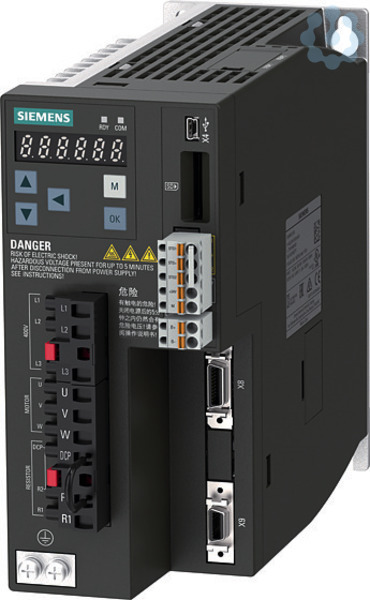 SINAMICS V90, mit PROFINET Eingangsspannung: 380-480 V 3 A - 15 %/+ 10 % 2,6 A 45-66 Hz Ausgangsspannung: 0 ? Eingangss 2,1 A 0-330 Hz Motor: 0,75 kW Schutzart: IP20 Baugröße A, 80x180x200 (BxHxT) Servoumrichter SINAMICS V90 das leistungsoptimierte und einfach zu bedienende Servoantriebssystem für vielfältige Motion-Control-Aufgaben mit Fokus auf dynamisches Bewegen und Verarbeiten. Der Servoumrichter SINAMICS V90 eignet sich zum Anschluss des Servomotors SIMOTICS S-1FL6, beide zusammen ergeben ein kostengünstiges Servoantriebssystem. Dieses zeichnet sich durch einen zuverlässigen Betrieb, eine optimierte Performance sowie eine einfache Handhabung aus. Mit dem SIMATIC Controller ergibt es ein starkes Team im TIA Portal. Je nach Ausführung kann für die schnelle und einfache Inbetriebnahme das kostenlose Inbetriebnahme-Tool SINAMICS V-ASSISTANT heruntergeladen werden. Der Servoumrichter SINAMICS V90 ist für den Betrieb an dreiphasigen Netzen geeignet und deckt mit vier Baugrößen einen Leistungsbereich von 0,4 k