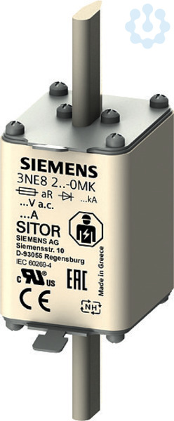 SITOR-Sicherungseinsatz, mit Messerkontakten, NH1, In: 315 A, aR, Un AC: 690 V, Un DC: 440 V, Stirnkennmelder Halbleiterschutzsicherungen SITOR 3NE, 3NC schützen Leistungshalbleiter vor den Auswirkungen eines Kurzschlusses. Das SITOR-Sicherungssystem von Siemens als wichtiger Bestandteil der SENTRON Schutzkomponenten für die Elektroinstallation bietet effektiven Personen-, Geräte- und Anlagenschutz durch sicheres Abschalten im Überlast- und Kurzschlussfall. Der Einsatzbereich umfasst zusätzlich Frequenzumrichter mit Sicherungen im Eingangs- und im DC-Zwischenkreis sowie auch USV-Anlagen und Sanftstarter für Motoren. Die Siemens SITOR-Sicherungen zeichnen sich vor allem aus durch: 1. Superflinke Abschaltcharakteristik im Vergleich zu herkömmlichen NH-Sicherungen. 2. Auch Leistungshalbleiter werden bei Kurzschluss sicher geschützt. 3. Der Siemens Qualitätsstandard sichert eine sehr gute Kennlinientreue. 4. SITOR-Zylindersicherungen sind nach IEC und UL und größtenteils auch CCC zugelassen und damit weltweit ein