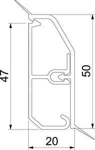 Sockelleistenkanal SL-L zur verdeckten Leitungsführung im Innenbereich. Die Farbe der Kanalunterteile kann fertigungsbedingt variieren. Mit aufrastbarem Oberteil und Unterteil mit Bodenlochung zur direkten Wandmontage. Richtungsänderungen mit den Formteilen ausführen und Kanalenden mit den Endstücken verschließen. Geträtetank zur Montage von Strom- und Datentechnik. Mit elastischen Anschlusslippen zur Kaschierung für unebene Wandflächen. Unter- und Oberteil als Set verpackt im Karton. Die Kanalkupplungen müssen separat bestellt werden. Geprüft nach DIN EN 50085-1 und DIN EN 50085-2-1.