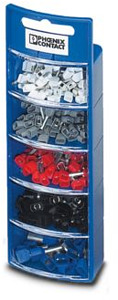 Sortibox, bestückt mit TWIN-Aderendhülsen nach DIN 46228-4, CSA-zertifiziert, je 50 Stck. AI-TWIN 2x0,5-8 WH, AI-TWIN 2x0,75-8 GY, AI-TWIN 2x1-8 RD, AI-TWIN 2x1,5-8 BK, 25 Stck. AI-TWIN 2x2,5-10 BU