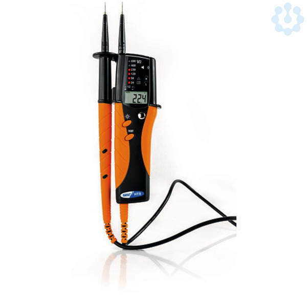 Der Spannungsprüfer HT8 wurde entwickelt, um grundlegende Messungen eines klassischen Multimeters durchzuführen. Der HT8 führt AC/DC Spannungsmessungen, Durchgangsprüfungen mit Summer durch und ist in der Lage, die Drehfeldrichtung zu ermitteln. Die Messwerte werden durch LEDs angezeigt. Es können die Messwerte über den LCD Display abgelesen werden. Um in dunklen Arbeitsbereichen problemlos messen zu können, wurde das Modell mit einer integrierten LED Lampe ausgestattet. Der Spannungsprüfer entspricht den Normen IEC/EN 61010-1 und IEC/EN 61243-2:2010, sowie den Sicherheitsrichtlinien CAT III 690 V, CAT IV 600 V.