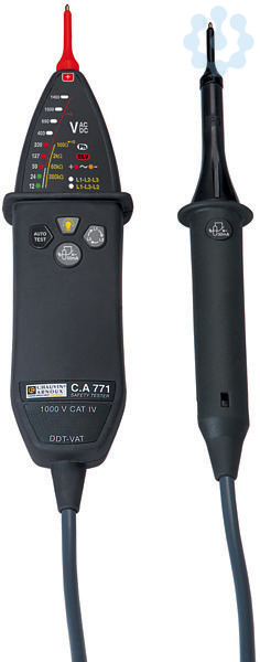 Um die unterschiedlichen Vorschriften einiger Länder zu erfüllen, ist der Spannungsprüfer in zwei Ausführungen erhältlich: mit oder ohne besonders geschützte Prüfspitzen IP2X. Der C.A 771 ist außerdem mit einem redundanten Sicherheitssystem ausgerüstet: die LED-Warnleuchte »ELV« blinkt, sobald die anliegende Spannung 50 VAC / 120 VDC übersteigt.