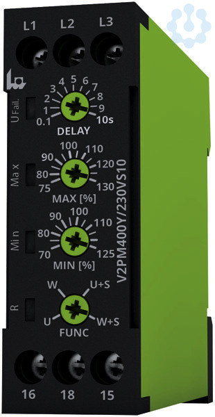 Phasenfolge- und Phasenausfallüberwachung Asymmetrieüberwachung Versorgungsspannung 400 VAC Versorgungskreis = Messkreis 1 Wechsler Baubreite 22,5mm
