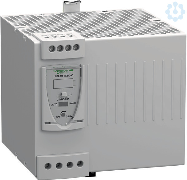 Phaseo. Die Spannungsversorgung ist insbesondere für Gleichspannungsversorgung in Automatisierungsanwendungen konzipiert und zeichnet sich durch ihre Robustheit aus. Ausgang 24 VDC mit 20 A / 480 W. Ausgangsspannung einstellbar 24-28,8 VDC. Überlastbarkeit zusätzliche 50% Leistung durch Boost-Funktion. Verhalten im Kurzschlussfall einstellbar manueller oder automatischer Reset. Eingangsspannung 100-120/200-240 VAC (50/60 Hz). mit PFC-Filter konform EN61000-3-2. Diagnoserelais für Unterspannungsmeldung. 2 LEDs für Zustandsmeldungen. Gehäuse aus Metall zur Hutschienenbefestigung mit Entriegelungshebel. Arbeitsprinzip elektronische Taktung.