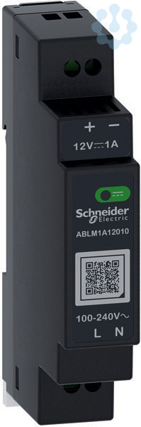 Spannungsversorgung Modicon der Baureihe MODULAR für Anwendungen in der Industrie sowie Gewerbe- und Wohngebäude. Ausgang mit 12V/1A. Nennleistung 12W. Kunststoffgehäuse zur Aufrastung auf einer Hutschiene oder aufschraubbar auf Montageplatte. Arbeitsprinzip elektronische Taktung. Mögliche Betriebstemperatur bis +70°C. Gehäusefarbe ist dunkelgrau. Eingang unten, Ausgänge oben am Gerät. Eingangsspannung 100-240 VAC (50/60 Hz). Zugang zu Dokumentation per QR-Code auf dem Gerät. IEC/EN 62368-1 konform, CE, CB-Scheme,cULus,cURus,RCM,EAC. Die Baureihe Modicon ABLM Modular umfasst Spannungsversorgungen mit Ausgangsspannungen von 5VDC, 12VDC oder 24VDC.