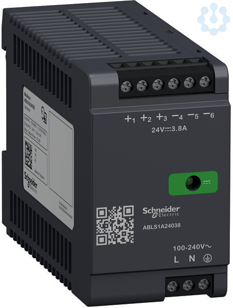 Spannungsversorgung Modicon der Baureihe OPTIMUM für Anwendungen in der Industrie sowie Gewerbe- und Wohngebäude. Ausgang mit 24V/3,8A. Nennleistung 90W. Kunststoffgehäuse zur Aufrastung auf einer Hutschiene. 1-Phasig. Mögliche Betriebstemperatur bis +70°C. Gehäusefarbe ist dunkelgrau. Eingang unten, Ausgänge oben am Gerät. Eingangsspannung 100-240 VAC (50/60 Hz). Zugang zu Dokumentation per QR-Code auf dem Gerät. IEC/EN 62368-1 konform, CE, CB-Scheme,cULus,cURus,RCM,EAC. Die Baureihe Modicon ABLS OPTIMUM umfasst Spannungsversorgungen mit Ausgangsspannungen von 12VDC, 24VDC oder 48VDC.