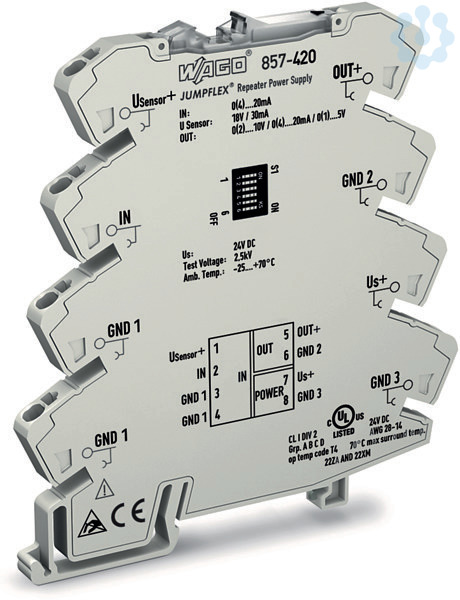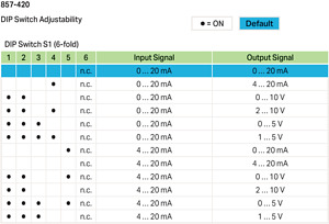 Trennverstärker. Stromeingangssignal. Strom- und Spannungsausgangssignal. Versorgungsspannung DC 24 V. 6 mm Baubreite. 2,50 mm²