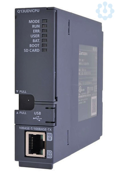 Die Universal CPUs sind die neueste Generation in der Familie der modularen Steuerung MELSEC System Q. Sie bilden das Kernstück der iQ Plattform. Zusammen mit der Motion-, Roboter- und NC-CPU bieten sie ein modulares, skalierbares und flexibles Automatisierungssystem. Integrierte Mini-USB-Schnittstelle für die Programmierung. Integrierte Ethernet-Schnittstelle für leistungsfähige Kommunikatons bei den Modulen Q_UDEH. Extrem schnelle Bitverarbeitung von 9,5 ns. Schneller Datenzugriff. Q_UDVCPUs führen Programme mit hoher Geschwindigkeit aus. In Q_UDVCPUs können SD-Speicherkarten und SRAM-Kassetten installiert werden.