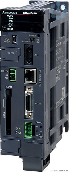 Die Q170MSCPU/Q170MSCPU-S1 vereinigt eine SPS-CPU, eine Motion-CPU und ein Netzteil in einem kompakten Gehäuse. Sie wird ohne Baugruppenträger montiert, bei Bedarf kann aber ein Erweiterungsbaugruppenträger mit Standard-SPS-Modulen angeschlossen werden. Eine integrierte Encoder-Schnittstelle ermöglicht die Synchronisation mehrerer Achsen durch einen externen Encoder. Als Betriebssystem und zur Programmierung wird, wie bei den Motion-CPU-Modulen, die Motion-Software SV13 oder SV22 verwendet. Ansteuerung von bis zu 16 Achsen, Kommunikation mit Servoverstärkern über das Hochgeschwindigkeits-Netzwerk SSCNETIII/H mit einer Übertragungsgeschwindigkeit von bis zu 150 MBit/s, die Programmierung und Konfiguration erfolgt mit den vertrauten Programmierwerk-zeugen GX Works2 und MT Works2, Erweiterbar durch Baugruppenträger (max. 5 Steckplätze) und E/A-, Sonder- oder Netzwerkmodule, Ethernet-Kommunikation über MC-Protokoll