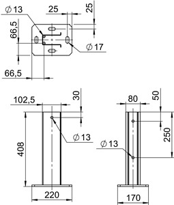Standfuß als Halterung für vormontierte Träger zum Montieren von PV-Freiflächensystemen. Montage auf Betonfundamenten mit Bolzenankern M16. Befestigungsmaterial muss separat bestellt werden.
