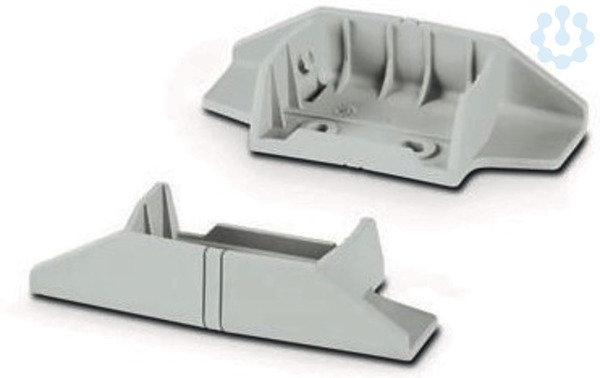 Standfuß zur Aufstellung der UCS-Gehäuse, Höhe: 47 mm, Material: Polyamid, Farbe: lichtgrau, ähnlich RAL 7035, Wandbefestigungmöglichkeit ist integriert, verrastet in den Schraublöchern des Gehäuses