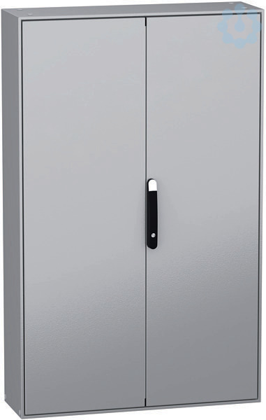 Spacial SM Monobloc kompakter Standschrank mit 2 Volltüren an der Vorderseite. 1600 x 1000 x 400 mm. Rückwand verschweißt, inklusive Montageplatte. 4-Punkt-Türverriegelungssystem mit Griff DB 5mm. Stahlblech, verzinkter Stahl für Montageplatte. Schutzart IP 55, IK10, Farbe RAL 7035. Inklusive 4 Halterungen für die Montageplatte.