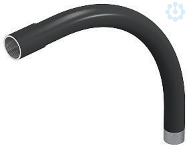 90°-Bogen für Elektroinstallationsrohre nach EN 61386-1 mit Gewindeenden nach DIN EN 60423. Mit gratfreier Innenwand. Pro Rohrbogen ist bereits eine Verbindungsmuffe aufgeschraubt.
