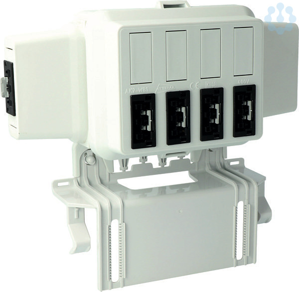 Steckbar 100% Gehäuse AK2, WAGO WINSTA, in:3pol sw, out:4x 3pol sw L1, inkl. Montageplatte gewinkelt