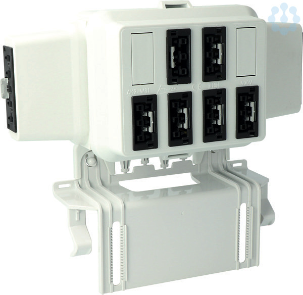 Steckbar 100% Gehäuse AK2, WAGO WINSTA, in:5pol sw, out:je 2x 3pol sw L1/L2/L3, inkl. Montageplatte gewinkelt