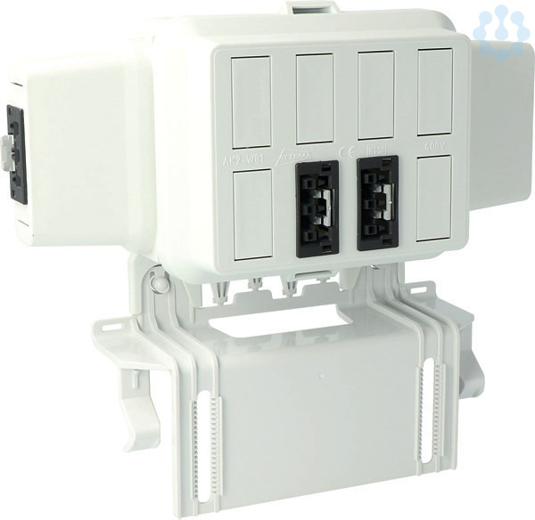 Steckbar 100% Gehäuse AK2, WAGO WINSTA, in:3pol sw, out:2x 3pol sw L1, inkl. Montageplatte gewinkelt