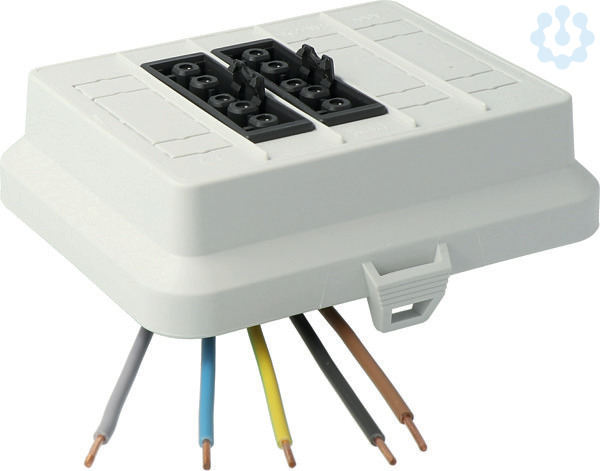 Steckbar Frontteil AK2, Wieland GST18,, in:5pol H07V-U, out:2x5pol sw L1+L2+L3, 125x100x42 mm, lichtgrau