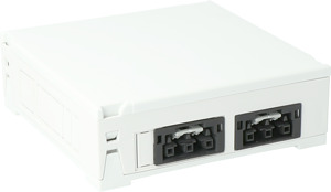 Steckbar Gehäuse PD, WAGO WINSTA,, in:2x3pol H07V-U, out:je 2x 3pol sw/ws, 120x120x40 mm, lichtgrau